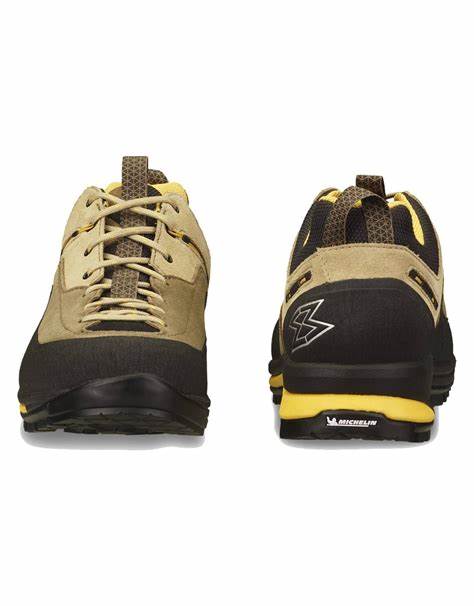 La tomaia è realizzata in robusta pelle scamosciata senza membrana, quindi la scarpa rimane molto traspirante anche nelle giornate calde. Per un maggiore comfort e protezione durante il passo, la scarpa è dotata di inserti in Efoam ultraleggeri nella zona della punta e del tallone. Il sistema Heel Lock aiuta a fissare saldamente il tallone. La suola con mescola doppia Michelin® offre la massima flessibilità e aderenza durante la camminata, nella zona della punta la mescola è adattata alle esigenze dell’arrampicata. Il disegno affilato del battistrada facilita i movimenti su terreni morbidi e scivolosi. La costruzione della scarpa offre flessibilità e trazione a 360° in tutti i tipi di terreno, ideale per arrampicate su roccia leggera, camminate su ghiaioni e terreni rocciosi