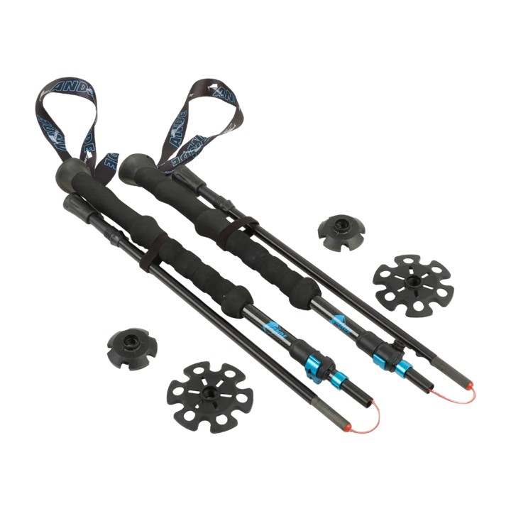 Bastoncino ripiegabile realizzato in un’ottimale combinazione di pregiata fibra di carbonio 3K nelle sezioni alte e in tutte le giunzioni, lea di alluminio Ergal 7075 nelle sezioni inferiori, che si traduce nel perfetto compromesso tra leggerezza, flessibilità e resistenza. Dotato distruttura pieghevole, è il bastoncino ideale per la vasta gamma di attività in montagna, incluso il trail running, anche grazie alla sua straordinaria leggerezza (soli 430gr la coppia). Il cavalletto interno in Dyneema ad altissima resistenza alla trazione, rivestito in materiale plastico, consente di montare e smontare il bastoncino con facilità e rapidità in ogni situazione. La sezione superiore è dotata di un comodosistema di bloccaggio con clip in lega di alluminio che consente una rapida e agevole regolazione della lunghezza, con un range h. 105/130cm. Dotato di manopola ergonomica 4 stagioni in eva-grip con lacciolo di facile e rapida regolazione e rondelle intercambiabili per neve e vari tipi di terreno. Lunghezza ripiegato 42cm.